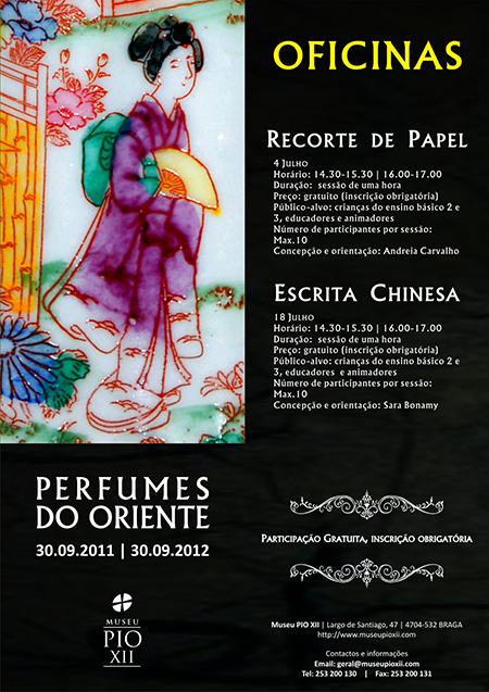 No âmbito da exposição Perfumes do Oriente, o Serviço Educativo do Museu Pio XII em colaboração com o Instituto Confúcio da Universidade do Minho irão orientar oficinas de criação de objetos de arte e escrita chinesa.